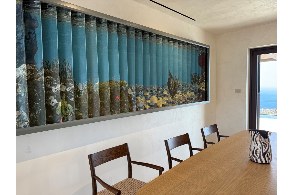Wooden framed installation with individual colored porcelain shutters (fixed)
